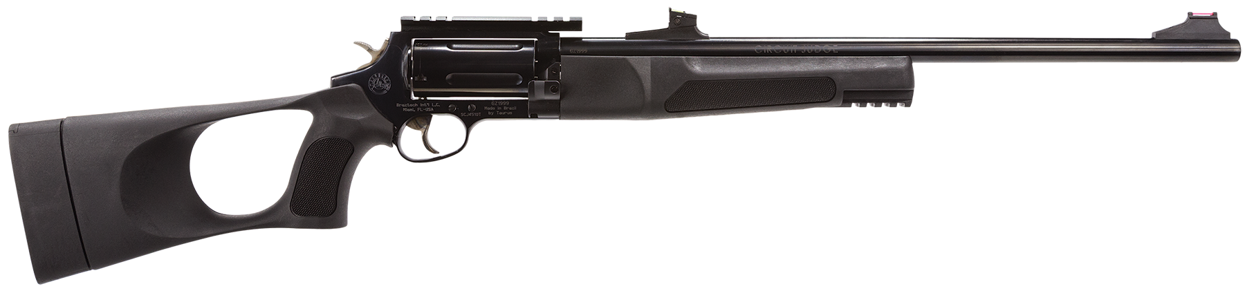 The Circuit Judge takes the most overwhelmingly successful revolver in recent history and extends its range for incredible hunting and shooting. The DA/SA action and 2-cylinder combo allow for quick and easy transition between .45 Colt and .410 GA rounds. The transfer bar safety system ensures the firearm will not fire unless the trigger is fully pulled, providing an extra layer of safety. The polished black barrel and receiver, along with the Monte Carlo stock, add a touch of elegance to the firearm’s rugged performance.