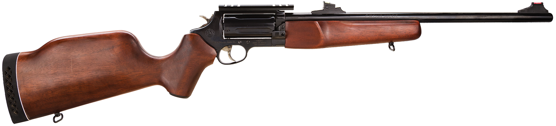 The Circuit Judge takes the most overwhelmingly successful revolver in recent history and extends its range for incredible hunting and shooting. The DA/SA action and 2-cylinder combo allow for quick and easy transition between .45 Colt and .410 GA rounds. The transfer bar safety system ensures the firearm will not fire unless the trigger is fully pulled, providing an extra layer of safety. The polished black barrel and receiver, along with the Monte Carlo stock, add a touch of elegance to the firearm’s rugged performance.