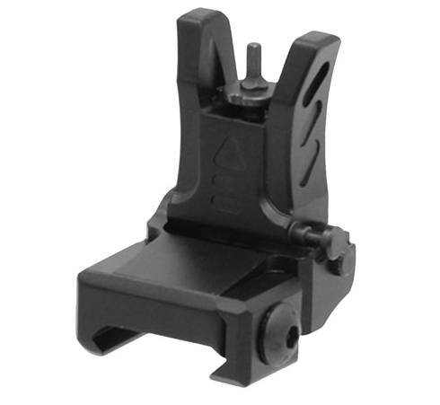 UTG MNT-755 Low Profile Flip-Up Front Sight AR-15  Aluminum/Steel Black Leapers Low Profile Flip-Up Front Sight is constructed of aluminum with a anodize black finish. It has a Posi-lock and a low profile 3mm locking bolt and mounting deck.