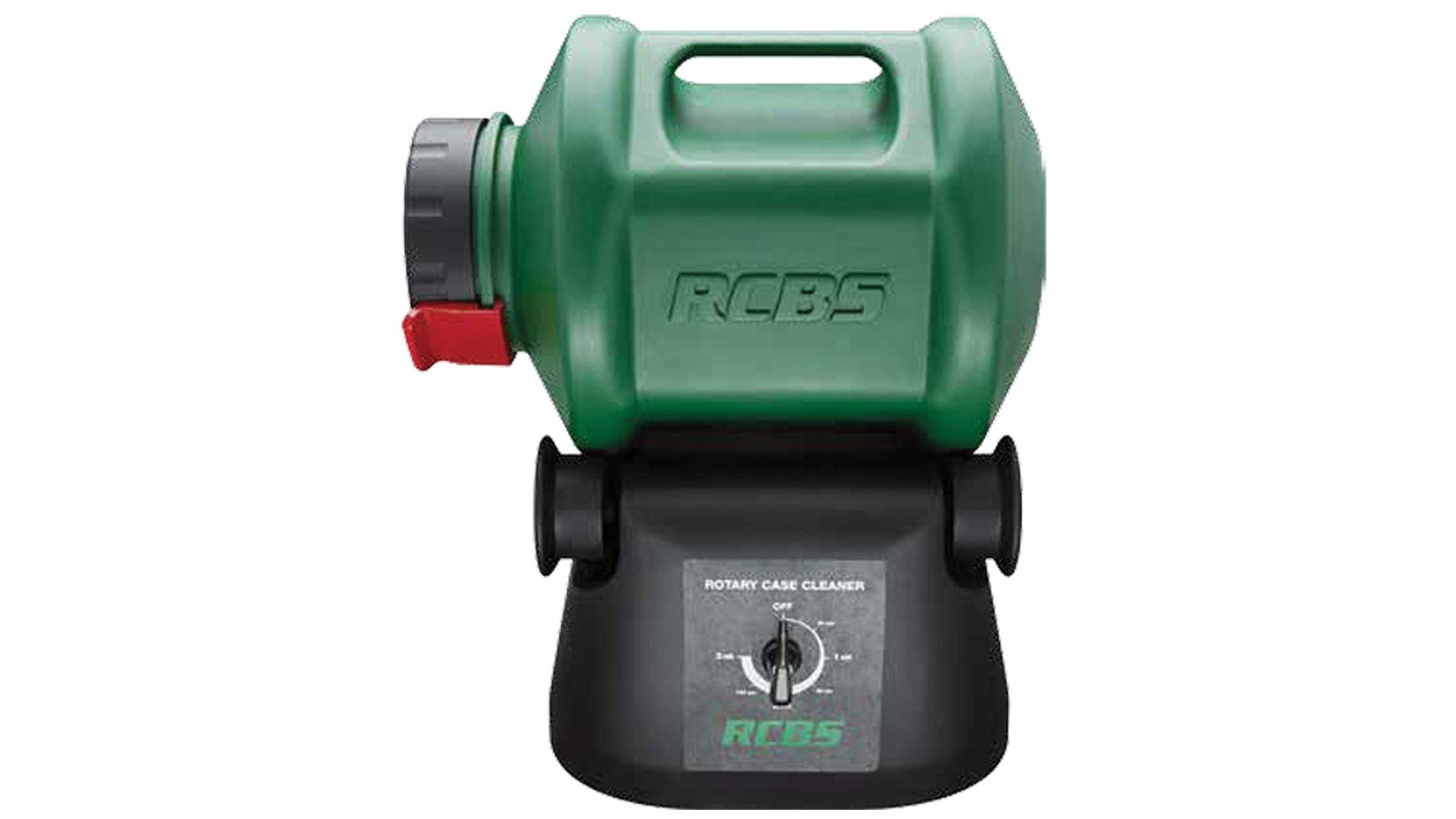 The RCBS Rotary Case Cleaner thoroughly cleans cases with constant rotating action. The gear-driven motor rotates the drum at 60 RPM. The tumbling action scrubs all surfaces of the cartridge case, inside and out, and the timer can be set for up to three hours of consecutive cleaning. The quiet, rubber-lined drum features an ergonomic handle for easy loading and unloading, and the quick-locking lid keeps contents secure.