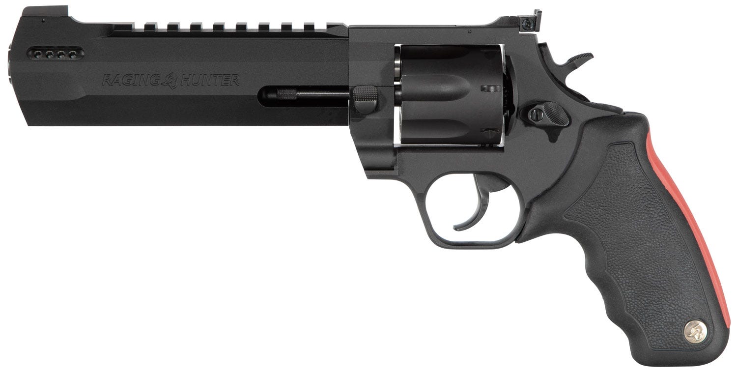 The exclusive cushioned insert grips on the Raging Hunter Series large frame revolvers makes shooting them comfortable and controllable. Also aiding in recoil management is the unique placement of the factory-tuned porting and gas expansion chamber that is designed to disperse gases directionally-reducing muzzle lift and delivering quicker target acquisition. This built-to-last Taurus revolver is a fun and effective alternative for short to medium range hunting scenarios.